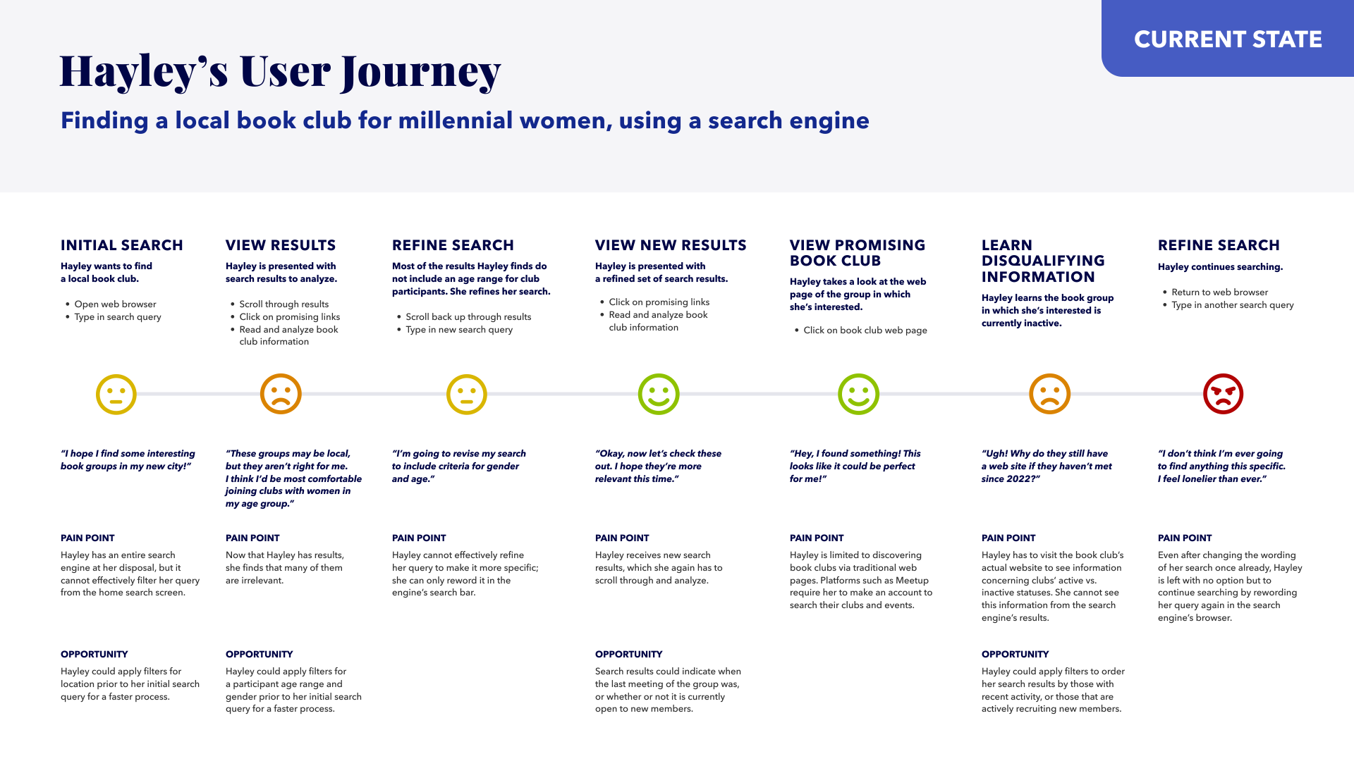 Hayley’s User Journey: CURRENT STATE