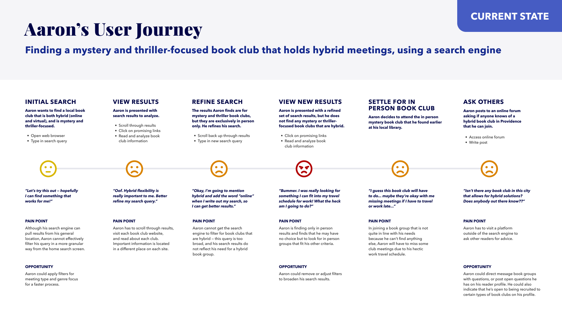 Aaron’s User Journey: CURRENT STATE